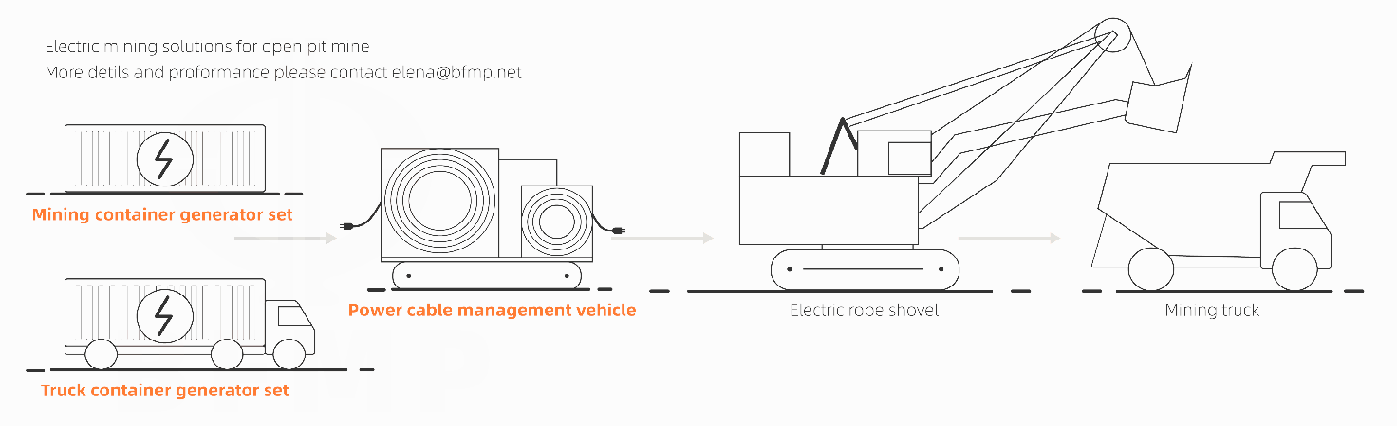 It’s a Sautonomous vehicle automatic follow the rope shovel to manage the trailing cable.