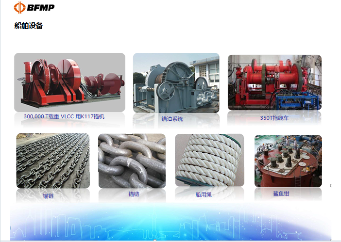公司為客戶提供各種錨纜機、拖纜機、吊機、舷梯、開艙機、錨、錨鏈及船舶內(nèi)外舾裝。