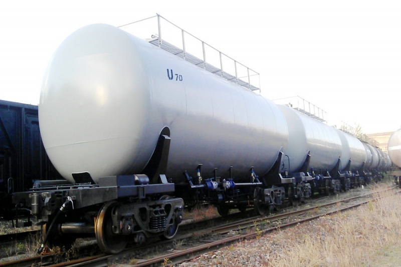 U70型散裝水泥罐車是供準軌鐵路使用,裝載水泥或其它相類似粉狀物料。工作方式為上裝下卸,可與現有用戶地面設施相配套。采用氣力輸送方式,利用壓縮空氣將水泥流態(tài)化后經卸料管輸送到遠距離的料塔。